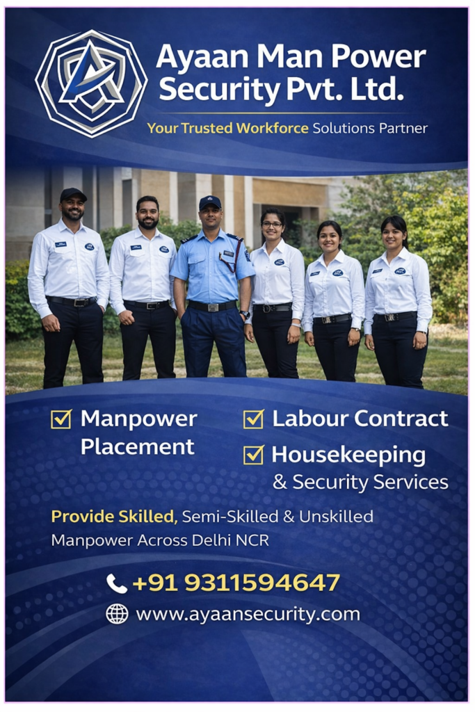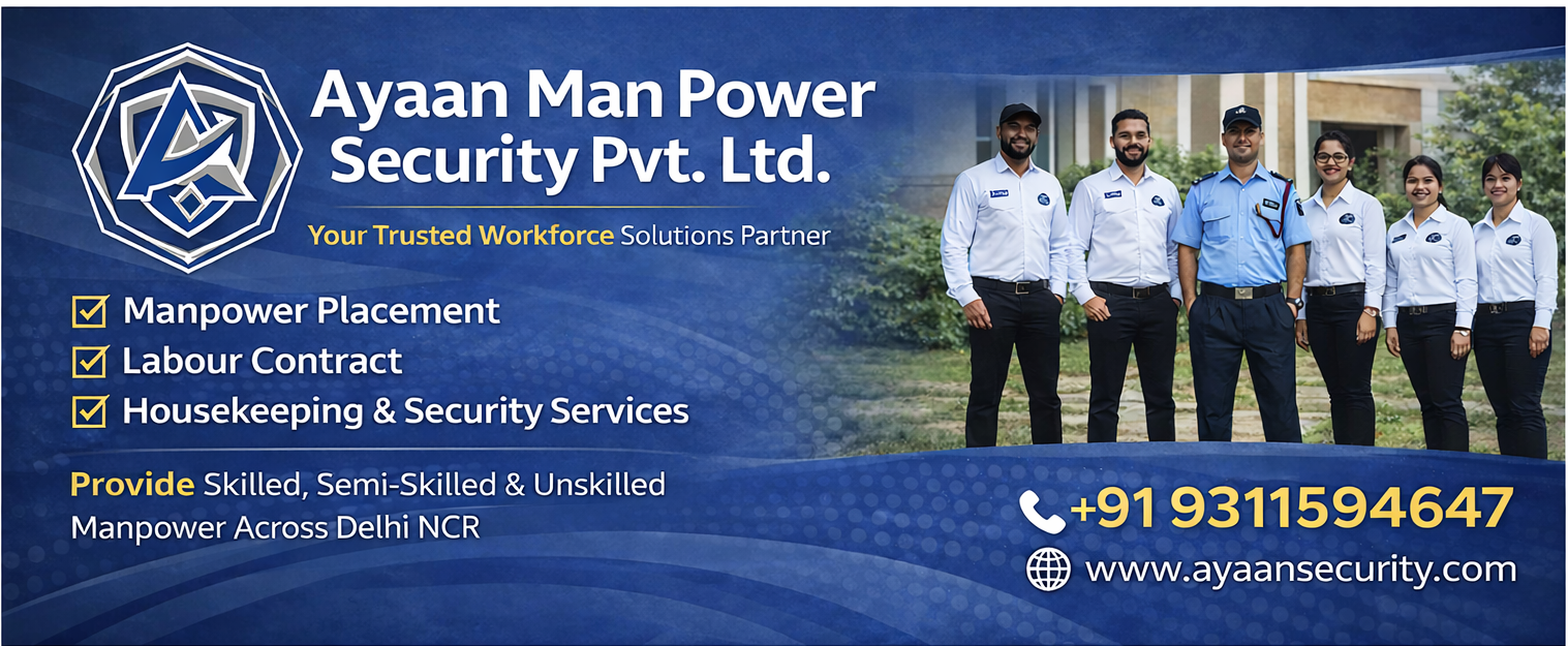 Your Trusted Partner for Professional Manpower Placement M/s Ayaan Man Power Security Pvt. Ltd. offers dependable manpower placement solutions for corporate offices, factories, warehouses, hospitals, hotels, retail outlets, and industrial units across Delhi NCR. We specialize in providing skilled, semi-skilled, and unskilled manpower tailored to your operational needs—ensuring efficiency, productivity, and long-term reliability.